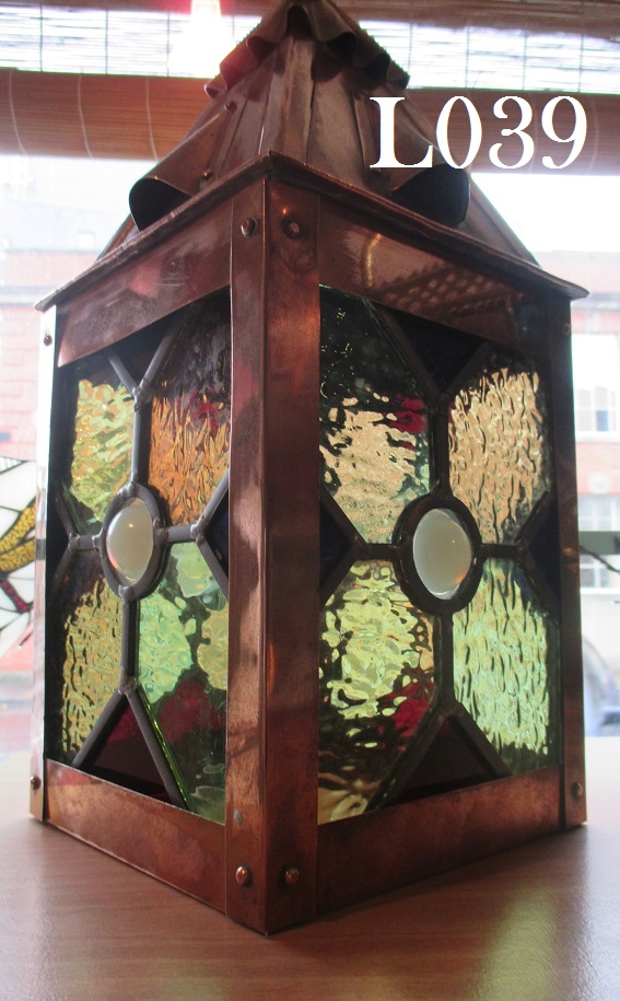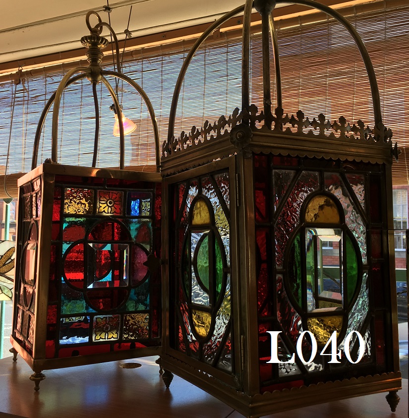 BELOW: Lantern L043 Original 1920's leaded and stained glass lantern. In very good condition with no repairs or restoration, all intact.